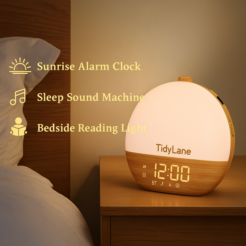 Harsh beeping alarms trigger stress in your nervous system the moment you open your eyes! The Sunrise Alarm Clock eases you into wakefulness with soft, gradually brightening light — helping you start your day feeling calm, refreshed, and balanced.